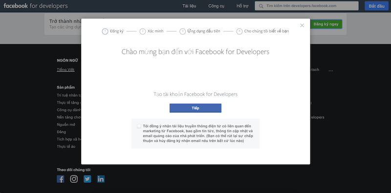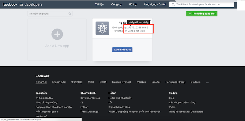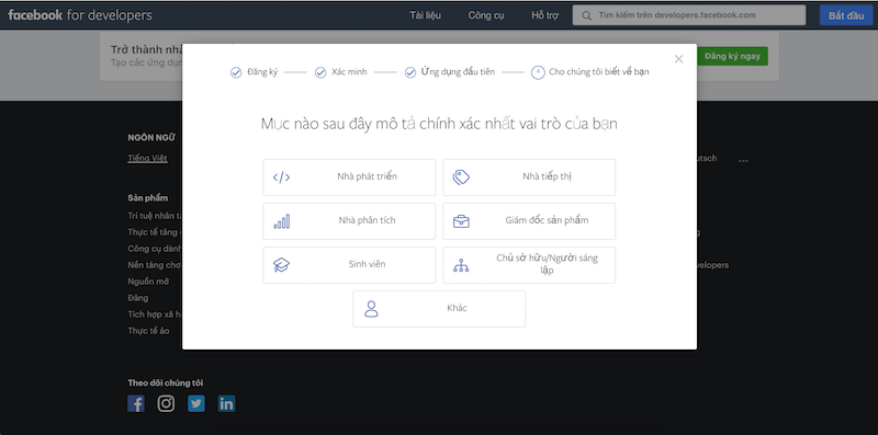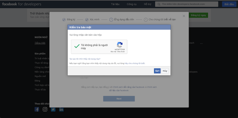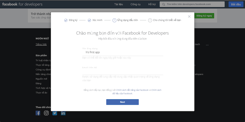 – Hoàn tất xác minh, bạn tạo ứng dụng đầu tiên của Facebook
