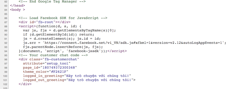 Từ đoạn mã có được, nếu bạn là quản trị website nhúng đoạn mã trên ngay dưới mở thẻ body. Với WordPress, CMS này hỗ trợ việc bạn dán mã này ở trong quản trị admin.