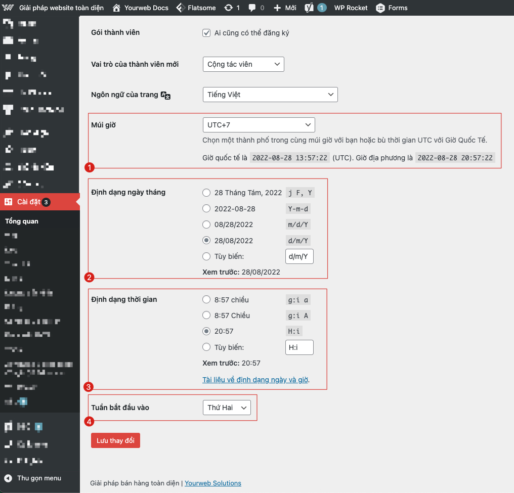 Thiết lập định dạng thời gian, timezone
