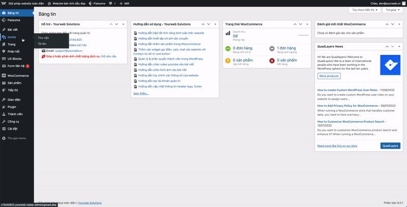 Thư viện là nơi quản trị tất cả các hình ảnh, video hoặc các tệp khác trên website, để tải lên hoặc xóa bạn truy cập vào Admin -> Thư viện